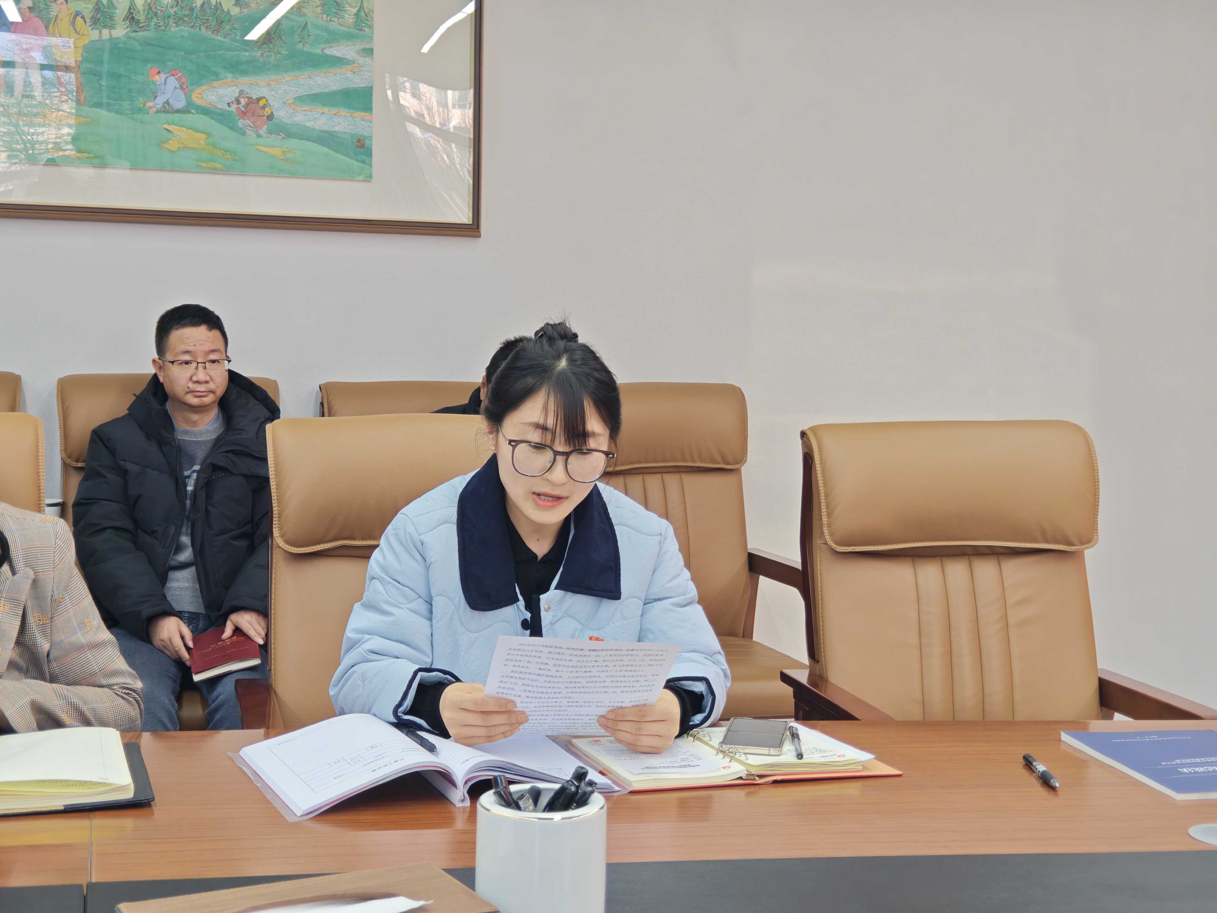 隨后,宣傳委員董亞慧和大家一起重溫了習(xí)近平總書記發(fā)表的2026年新年賀詞,“山海尋夢(mèng),不覺其遠(yuǎn);前路迢迢,闊步而行?!绷?xí)近平總書記的真情問候、殷殷囑托跨越山海、直抵人心,激蕩起億萬人民攜手并肩為夢(mèng)想奮斗、為幸福打拼、把宏偉愿景變成美好現(xiàn)實(shí)的磅礴力量。