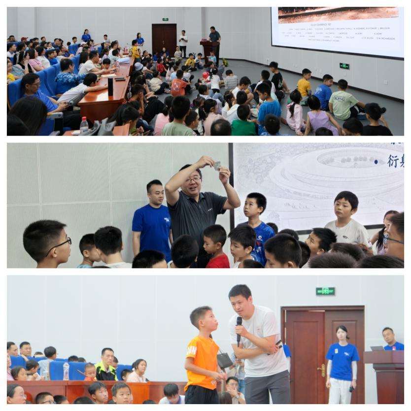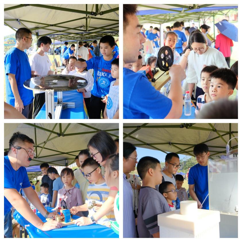活動(dòng)形式豐富多樣,科普展廳設(shè)有強(qiáng)流重離子加速器裝置(HIAF)和加速器驅(qū)動(dòng)嬗變研究裝置(CiADS)的沙盤模型,科研人員為現(xiàn)場(chǎng)公眾詳細(xì)講解這些國(guó)家重大科技基礎(chǔ)設(shè)施的進(jìn)展。在創(chuàng)新展區(qū),展示了超緊湊旋轉(zhuǎn)束重離子治療系統(tǒng)和中國(guó)首臺(tái)碳離子治療系統(tǒng)等模型,四極磁鐵、超導(dǎo)腔等加速器實(shí)物設(shè)備也吸引了不少關(guān)注??破?qǐng)?bào)告環(huán)節(jié)中,中國(guó)科學(xué)技術(shù)大學(xué)的謝治助理研究員作了題為《追光逐日,迎接未來(lái)》的報(bào)告,介紹同步輻射領(lǐng)域的前沿知識(shí);中國(guó)科學(xué)院近代物理研究所的藍(lán)江山副研究員則以《探索微觀物質(zhì)世界的奧秘》為題,帶領(lǐng)聽(tīng)眾探索粒子物理的奧秘,現(xiàn)場(chǎng)引發(fā)了熱烈提問(wèn)。互動(dòng)體驗(yàn)是本次活動(dòng)的亮點(diǎn)。在實(shí)驗(yàn)秀中,展示了高溫超導(dǎo)磁懸浮和核孔膜超黑材料等實(shí)驗(yàn)演示;在“粒子特工訓(xùn)練基地”,孩子們通過(guò)游戲模擬重離子在加速器中的運(yùn)動(dòng),深入理解其工作原理,特邀惠州學(xué)院附屬學(xué)校學(xué)生擔(dān)任該項(xiàng)活動(dòng)特別講解員,通過(guò)。此外,創(chuàng)工坊里,孩子們?cè)诶蠋煹闹笇?dǎo)下參與科學(xué)制作,激發(fā)了他們對(duì)科學(xué)的熱情。