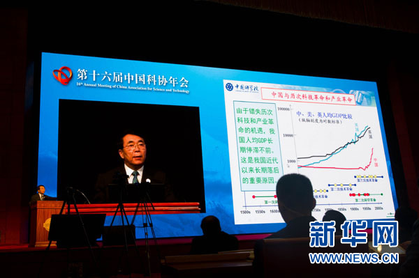 5月24日,中國科學(xué)院院長白春禮在第十六屆中國科協(xié)年會(huì)上作特邀報(bào)告。中國科學(xué)院院長白春禮在當(dāng)日開幕的第十六屆中國科協(xié)年會(huì)上作大會(huì)特邀報(bào)告時(shí)說,回顧人類社會(huì)發(fā)展過程中經(jīng)歷的五次科技革命,可以得出科學(xué)先導(dǎo)、雙輪驅(qū)動(dòng)和科技強(qiáng)國三大啟示。新華社發(fā)(胡超 攝)