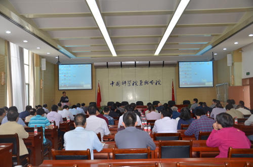 5月31日上午,應(yīng)蘭州分院分黨組邀請(qǐng),廣州分院分黨組“兩學(xué)一做”學(xué)習(xí)教育巡講團(tuán)一行三人來(lái)蘭作報(bào)告。蘭州地區(qū)院屬6個(gè)單位的所長(zhǎng)、書記、副所長(zhǎng)、副書記16人,黨委、紀(jì)委委員,中層管理骨干,研究室、實(shí)驗(yàn)室、中心主任、課題組長(zhǎng)等科研骨干,黨支部書記與離退休黨員代表,以及分院機(jī)關(guān)全體干部共100余人參加了報(bào)告會(huì)。報(bào)告會(huì)由蘭州分院分黨組書記、副院長(zhǎng)謝銘主持。